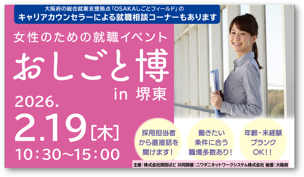 ・堺市をはじめ南河内に事業所のある人材募集中の企業が参加予定です。