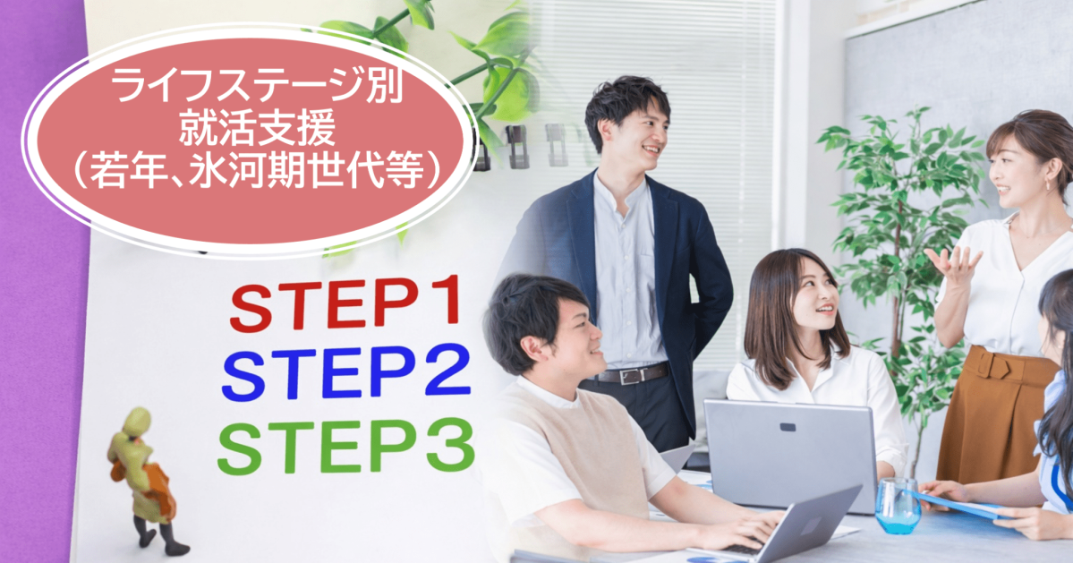 セミナーや合同企業説明会などを通じて、概ね45歳以下の若年者の就職活動を支援する国の事業です。