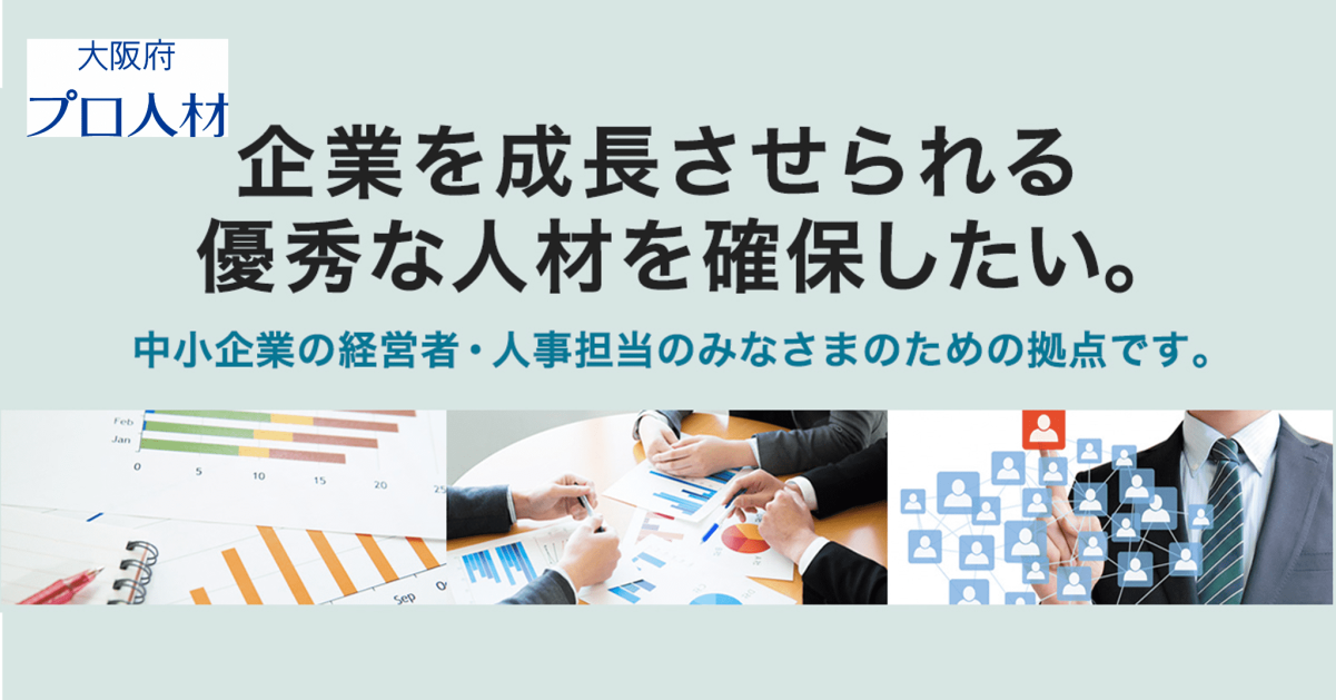 OSAKAしごとフィールド(中小企業人材支援センター)府内中小企業の人材確保と育成を支援。個社相談やセミナー、交流会を通じて採用力向上をトータルで支えます。詳細はこちら(外部リンク) 中核人材雇用戦略デスク(大阪府プロ人材) 中小企業のプロ人材採用を支援する事業です。経営課題を解決する専門人材の紹介や定着を無料で支援します。詳細はこちら(外部リンク) 大阪の未来社会を支える若者・企業応援事業企業の新卒採用を支援する事業です。採用ノウハウの提供や学生との交流会、職場体験のマッチングを行います。詳細はこちら(外部リンク)