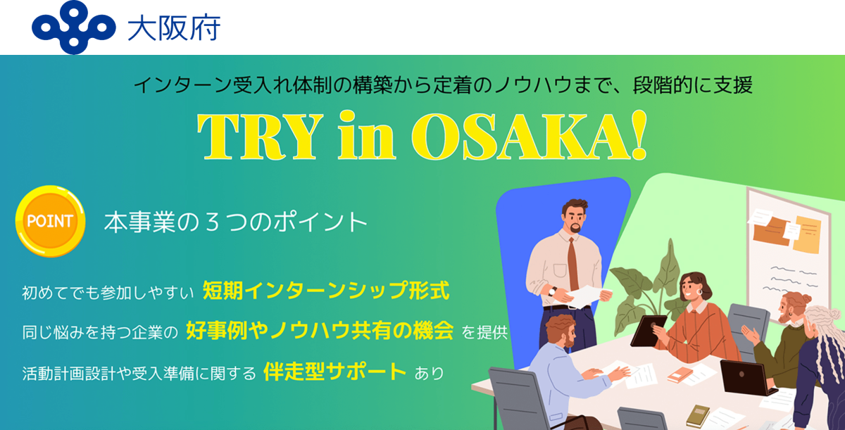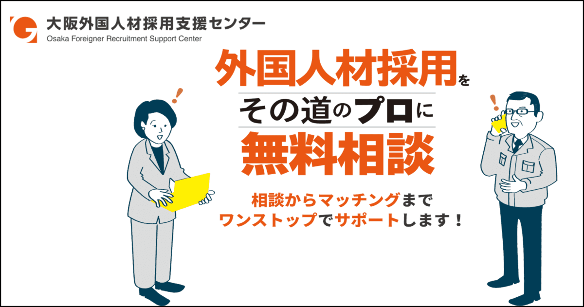 大阪外国人材採用支援センター中小企業の外国人採用を支援する相談窓口です。経営課題に合わせた採用のアドバイスや解決策を提案します。詳細はこちら(外部リンク) MEET IN OSAKA(外国人材受入加速化支援事業)府内企業と外国人材のマッチングを支援します。合同企業説明会やセミナーを通じ、採用をサポートします。詳細はこちら(外部リンク) TRY in OSAKA!( 外国人留学生インターンシップ活用チャレンジ支援事業)外国人留学生の受入れを通じて社内環境整備等を後押しし、府内企業の外国人材の採用・定着を支援します。詳細はこちら(外部リンク)